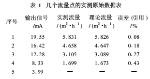 流量計廠家在出廠檢驗**中都把實(shí)測的幾個流量點(diǎn)的原始數(shù)據(jù)以表1方式給出,從中可見實(shí)測的引用誤差都遠(yuǎn)遠(yuǎn)小于*大允許誤差。表1的EMF量程為6m³/h(100L/min),輸出電流為4~20mA;且在滿量程值50%以上的測量點(diǎn)精度較,而在滿量程值1/3以下測量點(diǎn)精度低。