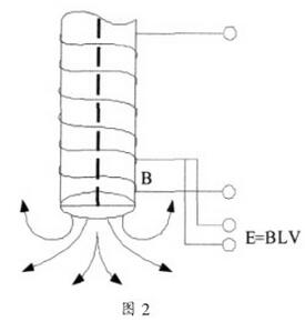 與一般污水流量計不同的是,插入式污水流量計的傳感器是外側(cè)形成外發(fā)射磁場,測量電極在傳感器的端部或兩側(cè)如圖2所示,值得注意的是,外發(fā)射磁場電磁流速傳感器的感應(yīng)信號受流體和磁場的邊界層厚度影響,會降低測量的線性度。