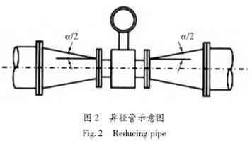 (12)當(dāng)管道內(nèi)流速偏低,工藝流量又較穩(wěn)定,為滿(mǎn)足儀表對(duì)流速范圍的要求,在儀表部分局部提報(bào)流速,可選擇流量計(jì)口徑小于工藝管道,并在流量計(jì)的前后加接異徑管。為了在安裝異徑管后不過(guò)多影響流場(chǎng)分布,不影響污水流量計(jì)的精度,要求異徑管的中心錐角α不大于15°,越小越好。這樣可把異徑管視為直管段的一部分。