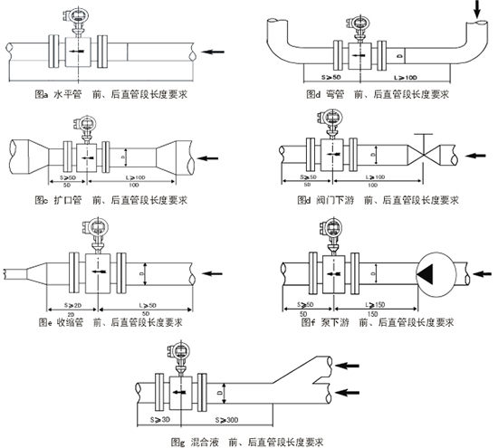 5) 流量計(jì)應(yīng)安裝在水泵后端,決不能在抽吸側(cè)安裝;閥么應(yīng)安裝在流量計(jì)下游側(cè)。