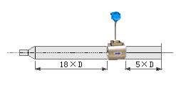 若傳感器安裝點的上游有>15°漸擴管,傳感器上游應有不小于18D的等徑直管段,下游應有不小于5D的等徑直管段。