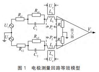 提出在硬件電路上加入模擬開關(guān), 干擾尖峰到來時(shí)斷開模擬開關(guān)避免干擾進(jìn)入后級(jí)電路,尖峰過去重新打開模擬開關(guān);K.Saito 等提出漂移校正法,先以高勵(lì)磁頻率進(jìn)行勵(lì)磁,在勵(lì)磁過程中插入低勵(lì)磁頻率提取用于漂移校正的非固定微分噪聲分量,但在插入的低勵(lì)磁頻率段漿液噪聲較大且很難將漿液噪聲與流量信號(hào)分離,此時(shí)的校正因子非單純的非固定噪聲分量,改進(jìn)措施是長時(shí)間取平均值得到穩(wěn)定因子。 傳統(tǒng)方法是同步采樣保持法,即在磁場(chǎng)穩(wěn)定階段采樣。 其他消除干擾的方法有設(shè)置干擾補(bǔ)償機(jī)構(gòu)、控制勵(lì)磁電流變化率減小干擾幅值、矩形波代替梯形波、希爾伯特黃變換結(jié)合傅里葉變換和程控增益技術(shù)等。經(jīng)上述對(duì)現(xiàn)有的文獻(xiàn)分析與總結(jié)可知, 當(dāng)前消除微分噪聲主要從信號(hào)處理方面入手,并未對(duì)影響噪聲的因素加以研究。 本文建立電極測(cè)量回路等效模型,給出仿真模型搭建、參數(shù)取值和仿真結(jié)果分析。