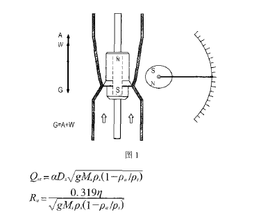 如圖1所示,相對應測量介質的某**量,磁性浮子在測量管中對應一個浮子位置,這個浮子位置通過指示器中的經過精密充磁的磁禍合系統帶動指針,由刻度盤和指針讀出相應的流量值。