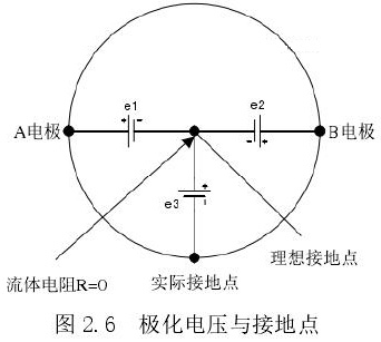 直流干擾主要來源于濃硫酸流量計(jì)工作時(shí)出現(xiàn)的電化學(xué)噪聲。當(dāng)電解質(zhì)和接液部件一旦接觸,電解質(zhì)中的正負(fù)離子將會(huì)即刻出現(xiàn)定向運(yùn)動(dòng),即使沒有通電,電解質(zhì)中的正負(fù)離子會(huì)產(chǎn)生一個(gè)定向運(yùn)動(dòng),此時(shí)在電解液中會(huì)形成一個(gè)明顯的電位差,出現(xiàn)的此種現(xiàn)象被稱為極化現(xiàn)象。可從圖 2.6 中進(jìn)行觀察,兩個(gè)電極若是產(chǎn)生了大小相等,方向相反的電位e1=e 2時(shí),兩個(gè)電極之間的電位差可視為零;當(dāng)兩個(gè)電極之間的電位呈現(xiàn)出e1 ≠e2 的關(guān)系時(shí)則表示兩個(gè)電位之間存在一個(gè)明顯的電位差,產(chǎn)生的電位差之間則會(huì)出現(xiàn)相應(yīng)的電流從而形成極化電壓。此電壓與共模電壓3e 將會(huì)共同被轉(zhuǎn)換器前的放大器攝取,此時(shí)極有可能會(huì)出現(xiàn)放大器無法工作的情況,此種情況主要是由于極化電壓過大所導(dǎo)致,當(dāng)極化電壓較大時(shí)將會(huì)把放大器的輸入端堵塞,此時(shí)放大器無法正常工作。為了能有效的避免發(fā)生此種情況需要控制降低在電磁場(chǎng)中所產(chǎn)生的極化電壓。