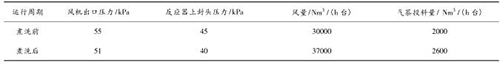 煤氣流量計煮洗吹掃后,裝置運行期間無燃爆事故,且裝置運行的風量明顯提高,系統阻力明顯降低,投料量增加?,F將煮洗前后的運行數據對比如下: