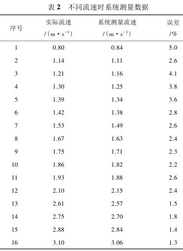 由表 2 測量數據可知,系統在測量低流速液體時(流速小于 1 m/s)誤差較大,達到 5%,當待測液體的流速增大時(大于 1.4 m/s),誤差逐漸減小,基本維持在 3%以內。由此可見系統具有較高的檢測精度,尤其是當管道中的液體流速較高時,系統的檢測誤差不超過 3%,達到了設計預期。