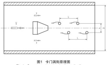 按國際標準化組織 IS07145(在環(huán)形截面封閉管道中的流體流量測定--在截面一點的速度測量法),采用埋入壓電晶體的渦街測速探頭,插入大口徑工業(yè)管道內,將卡門旋渦頻率轉換為與流量成正比的標準信號:(4 ~ 20)mA DC。