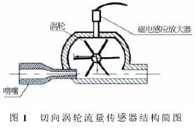 高溫導熱油流量計基本構造見圖1。被測流體在流經葉輪之前流道會減縮,流速增加,流體經過葉輪后葉片旋轉,磁電傳感器記錄葉片轉動頻率,得到被測流體相對應的流量。