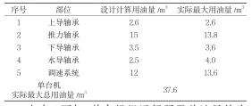 由表1可知,單臺機組運行所需總油量約為37.6m3,其中各軸承所需油量約為24m3,均超出設計計算總油量。機組運行所需總油量超出一個運行油桶的總容積,至少需用2個油桶來盛放。為保證機組各軸承用油和調速系統用油的油品質量,機組排油時將各軸承所用透平油(約為24m3)排至一個運行油桶中,將調速系統所用透平油(約為13.6m3)排至另一個運行油桶中,避免混合造成油質化驗指標不滿足用油設備的要求。