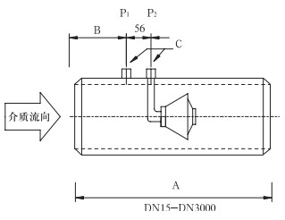 取壓口法蘭公稱直徑(標準設計)為DN40,也可以依據(jù)用戶要求選取法蘭直徑。