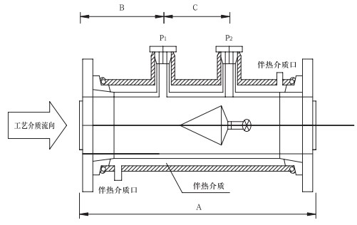 專門為測量要求夾套管伴熱工藝介質(zhì)的流量而設計,特別適合易結(jié)晶介質(zhì)及溫控要求嚴格的場合。鋼制夾套管法蘭標準:SHT501-1997。