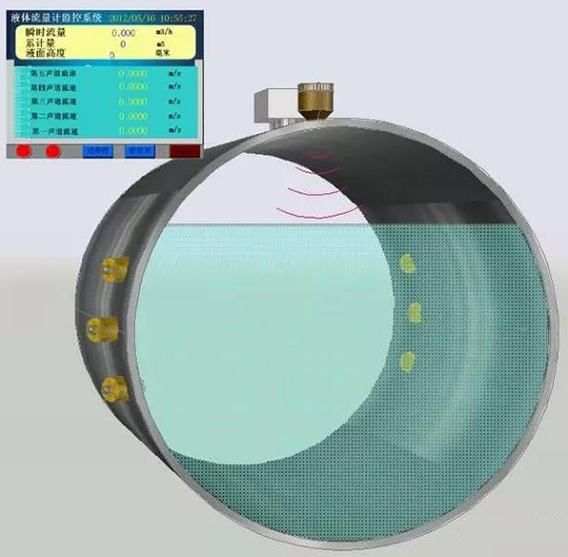 超聲波流量計的工作原理是,借助時差式測量原理,通過一對超聲波探頭發射信號穿過中間介質到達另一側管壁,被另一個探頭接收到,另一側探頭同樣發射信號被*一個探頭接收到。在這個過程中,由于信號的輸送時間受介質流速的影響,所以,存在一定的時間差?;诖?,超聲波流量計借助相關公式計算出了相應的流量值。