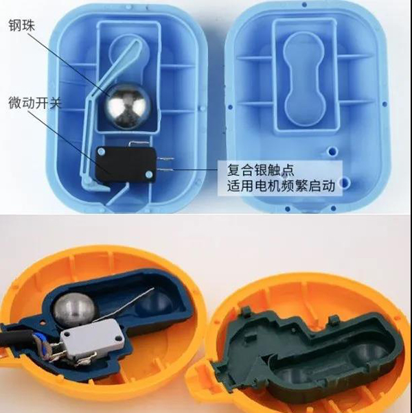 當(dāng)浮球在液體浮力的作用下隨液位的上升或下降到與水平呈一定角度時,浮球體內(nèi)的驅(qū)動機構(gòu)——驅(qū)動大容量微動開關(guān),從而輸出開(ON)或關(guān)(OFF)的信號,共報警提示或遠程控制使用: