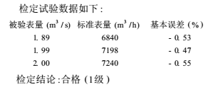 現以其中1臺開封儀表廠生產的口徑1600mm的0.5級電磁流量計為例,分析超聲波流量計的檢定方法及其優缺點。
