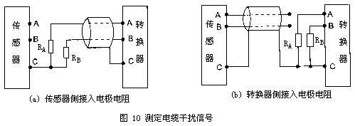 按圖7-10所示及上文"電極接觸電阻的測量"所測得兩電極的大體電阻值RA、RR,分別按圖a、b接入電路所測得零點之差應(yīng)在滿度值1%或其基本誤差范圍以內(nèi)。